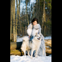 свадебная фотосессия невесты в лесу, невеста с хаски
