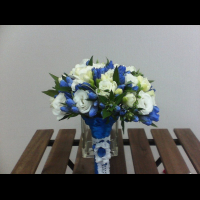 Букет невесты и бутоньерка для жениха. Бело-синяя свадьба.