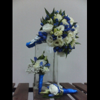 Букет невесты и бутоньерка для жениха. Бело-синяя свадьба.