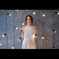 Весенняя свадебная фотосессия в студии, невеста с лампами