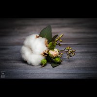 Бутоньерка с хлопком, кустовой розой и эвкалиптом