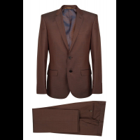 Костюм представительского уровня, Classic Fit (полуприлегающий) силуэт. Ткань медно-коричневого цвета. Данная ткань из линейки современных итальянских шерстяных тканей с кручением нити SUPER 140’S. Пиджак строгого силуэта следует естественным линиям фигуры. Край борта, лацкан, воротник, листочка и клапаны декорированы отделочной строчкой «вспушка» (имитация ручного стежка). Застежка на 2 петли, пуговицы, рукава со шлицами на 4 пуговицы, по спинке 1 шлица. Карманы с клапанами, нагрудный карман листочка. На подкладке обработано 3 кармана, 1 застёгивается на пуговицу, подкладка оригинального цветового решения. Брюки прямого покроя с традиционной застежкой, ширина брюк по низу = 21 см. На поясе предусмотрены шлевки для ремня. Этот костюм подчеркнет ваш стиль и изысканный вкус.