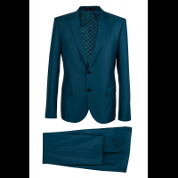 Классический костюм премиум класса, Classic fit (полуприлегающий) силуэт. Ткань тёмно-изумрудного цвета. Пиджак застёгивается на 2 петли и пуговицы, 1 нагрудный карман листочка, 2 боковых кармана с клапанами, по спинке шлица. На подкладке обработаны карманы, 1 застёгивается на пуговицу, сама подкладка оригинального цветового решения и дизайна. Брюки прямого покроя с традиционной застежкой, ширина брюк по низу = 21 см. На поясе предусмотрены шлевки для ремня. Стильный и элегантный вариант для делового мужчины.