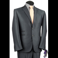 Классический костюм премиум класса, Slim fit (прилегающий) силуэт. Ткань серого цвета с микродизайном. Пиджак застёгивается на 2 петли и пуговицы, 3 боковых кармана в рамку, по спинке 1 шлица. Отделка воротника, обтачки карманов изготовлены из однотонной ткани компаньона. На подкладке обработано 3 кармана, 1 застёгивается на пуговицу, сама подкладка оригинального цветового решения и дизайна. Брюки с слегка заниженной талией, прямого покроя с традиционной застежкой, ширина брюк по низу = 19 см. На поясе предусмотрены шлевки для ремня. Стильный и элегантный вариант для делового мужчины.