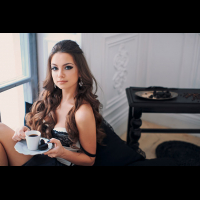 Утро невесты в чёрно-белых тонах, невеста с кофе