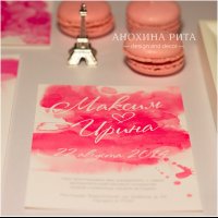 Приглашение на свадьбу в стиле акварельного рисунка с мотивами Парижа. Нежные цвета, размытые формы и плавные очертания.