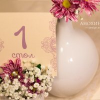 Номер для стола с оттенками айвори и лаванды. Приглашение напечатано на дизайнерском картоне с перламутровым отливом.