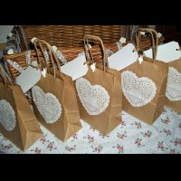 свадебный декор из ажурных бумажных салфеток, бонбоньерки в пакетах