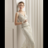 Платье из креповой ткани и чехол из гипюра, цвет слоновой кости.