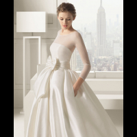 Платье из хлопкового тюля и грубого шелка, цвет слоновой кости.