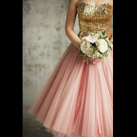 Идеальное сочетание: розовые и золотые оттенки, розово-золотое платье невесты