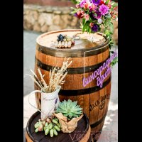 Свадьба "Виноградный букет" Бочка отлично дополнила зону выездной церемонии, а подушечкой из пробок мы поддержали тематику.
