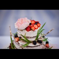Свадьба "Седьмое небо..." Свадебный торт открытый, оформленный ягодами и живыми цветами