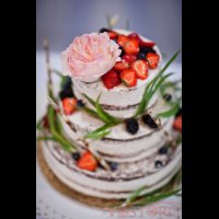 Свадьба "Седьмое небо..." Свадебный торт открытый, оформленный ягодами и живыми цветами