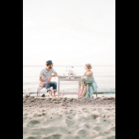Фотосессия love story на берегу моря, невеста и жених за столом