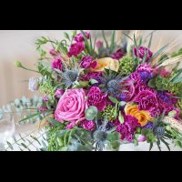 Свадебная композиция на стол молодоженов из роз, кустовых гвоздик, лизиантуса, эрингиума, скиммии, эвкалипта и колосков пшеницы. Стоимость 5900 рублей + стоимость вазы