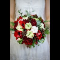 Cвадебный букет из роз, ранункулюсов и анемонов с хлопком, шишками и эхевериями
