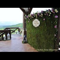 Оформление летней веранды загородной усадьбы в Крыму. Стена из  мха и живых цветов.