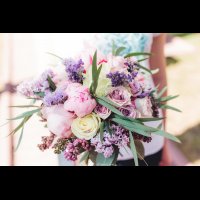 Свадебный букет с сиренью и пионами