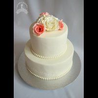 Свадебный двухъярусный торт с цветами, ручной лепки.