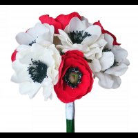 Свадебный букет из анемонов и красных маков в яркой красно-белой цветовой гамме.