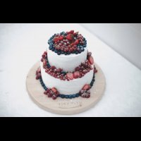 свадебный торт со свежими сезонными ягодами,как яркий акцент на нежных сливках