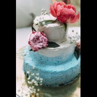 Нежный кремовый свадебный торт ,украшенный композицией из пионов