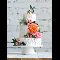 Нежный кремовый свадебный торт украшенный живыми цветами для элегантной свадьбы.