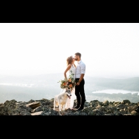 Свадьба в горах. Горы. Перья. Нежная свадьба. Свадьба в светлых тонах. Яркий букет. Большой букет. Хаски. Хаска. Собака на свадьбе. Собака.
