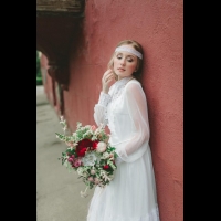 Немного о платье: верх платья сделан из кисеи и гипюра, рукав на манжете, юбка "солнце" с воланом. Подкладка атласная