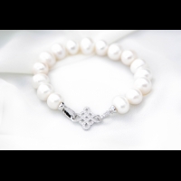 Классический браслет из натурального жемчуга. В замочке инкрустированы цирконы, ювелирный сплав не темнеет, не вызывает аллергию.