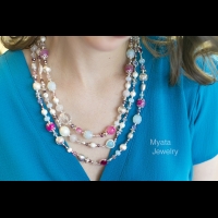 Украшения из коллекции CANDY созданы с использованием натуральных камней: розового агата, речного жемчуга, лунного камня, розового кварца, стеклянных бусин, а также цепочек, подвесок и эксклюзивной металлической фурнитуры. Длина ожерелья 50 см.