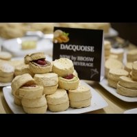 Мероприятие в L'Oreal. Фирменный десерт от кейтеринга BBOSW Дакуаз с малиновой прослойкой, на вид хрустящие, хотя на самом деле это очень мягий и нежный десерт.