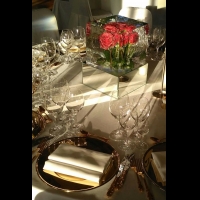 Оформление стола гостей ледяными скульптурами. Ледяной кубик живыми розами внутри в зеркальном поддоне.