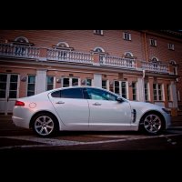 Представительский автомобиль в необычном перламутровом цвете, со светлым кожаным салоном, климат-контролем и современной медиа-системой.