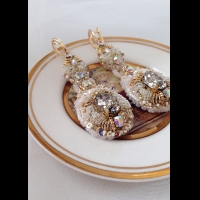 Длинные серьги с ювелирными кристаллами Сваровски, позолоченной фурнитурой, итальянскими пайэтками, винтажным бисером и канителью