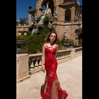 Яркое выпускное силуэтное платье для ярких девушек. Сделано из французского фатина телесного цвета с регилиновой лентой по канту юбки.