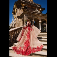 Роскошный прицепной шлейф с регилином делает платье удобным и многофункциональным.