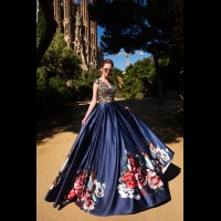 Пышное стильное платье из королевского атласа и нюдовой сеткой расшитой в ручную графитовым бисером и камнями Swarovski.