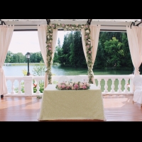 Полевая свадьба в Снегирях, президиум - эвкалипт, гипсофила, пионы, хедера