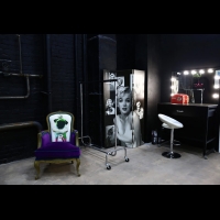 Париж - зал 50 кв.м. с декоративной стеной из черного кирпича и большой белой циклормаой.