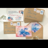 Акварельные приглашения в крафт конверте со вставкой и подписью на конверте от lillas.ru