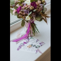 Свадебный букет из пионовидной розы, ранункулюсов, хамелации, статицы и пр.