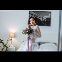 Букет-растрепыш в сиренево-фиолетовых тонах.