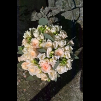 Классический по составу и форме, очень ароматный и нежный букет из голландских роз, фрезий и эвкалипта. Стоимость 2600 руб.