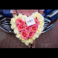 Нежная композиция в бело-розовой гамме, в дизайнерской коробке в форме сердца,прекрасно сочетает в себе розы двух ярких сортов