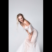 Свадебное платье по фигуре из плотного атласа с декоративной сеткой.