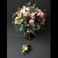 Зимний букет невесты из нобилиса, тюльпана, скимии, фрезии