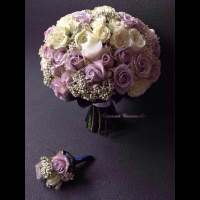 Сиреневый букет невесты из ранункулюса и озотамнуса