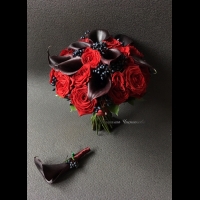 Свадебный букет из вибурнума, каллы и роз с зеленью рускуса.